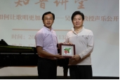 紧接着,由广州南方学院副校长曹广福教授,广州南方学院校长助理兼音乐系系主任蒋玮老师,华南理工大学122cc太阳集成游戏声乐系主任吴哲铭教授,广州大猫音乐文化发展有限公司 CEO杜明军先生,广州南方学院音乐系声乐教研室主任徐静莹副教授以及钢琴教研室主任徐韵副教授为广州南方学院音乐系“知音讲堂”启动仪式进行揭幕,“知音讲堂”第一讲:如何让歌唱更加动听---吴哲铭教授声乐公开课正式开始。